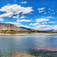 宽敞一望无际的拉萨河,搭配上蓝蓝的天空,以及躲在山旁的云朵,宛若一幅明星片。不需要p图的色泽,美的令人心动,到来的季节,水量也很充沛