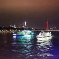 珠江夜游是很好的游览广州的好选择!网上顶票,前往码头,乘游船游览珠江,两岸是高楼大厦,灯火辉煌!经典的广州塔,海珠大桥就在眼前!