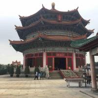 圆玄道观地点很偏远,人很少很清净,可能我去那天不是节假日。去那天就碰见几拨老人,后面才看见一些情侣,和家庭,建筑高大壮观,最舒服的还是坐在池边的摇椅上了,凉风吹过来,太惬意了。顺道去游了曼谷园,石头记没进去,时间不够了。因为太远了,我到道观都中午了,还有就是门外没有什么吃的,就饭店,我一人怎么吃哦,提醒人少去的话在其他地方吃饱再去。坐公车到地铁站要一个钟。道观展区分3层,我一个人逛完都没有人,展区只能看不能拍照,有些古琴,袈裟,还有少数民族服饰什么的。有个金殿真是耀眼呀,工作人员介绍说财神爷全身都是黄金打造的呢。