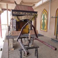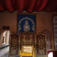 吐鲁番郡王府门票20元,定价还算合理,毕竟郡王府的面积在那。建筑特色很鲜明,看到了一个烤馕的炉子模型。郡王府内部有一条地下通道,非常凉爽,地道里展示了一些关于郡王的历史油画,还有那些在这里取景过的剧组的剧照,其中就有史上最丑朱孝天版的楚留香。王府的居室,装饰有许多地毯和壁画,富有异域风格,家具的木刻都很华丽富贵。