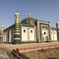 三月来到新疆喀什香妃墓游玩,据说这只是香妃的衣冠冢,其实这个建筑是很伟大的,在当时那个时候,没有现代化器械,造出跨度17米的穹顶,没有任何支撑梁,这个在当时是几乎不可能的,并且墓室外墙壁顶子贴着绿色砖和蓝白相间的砖,上面的维吾尔族纹饰没片也不一样,并且这个制砖的手艺现在已经失传,墓室内不能拍照,建议尊重民族习俗