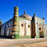 香妃墓位于喀什市东郊5公里处的浩罕村,原名为阿帕克霍加麻扎,是新疆最著名的伊斯兰教圣裔家族的陵墓,后来因传说乾隆皇帝的香妃埋葬于此。事实上这里是一大家族五代72人的陵墓群,香妃墓只是其中之一。香妃墓是一座大院,院内修建了门楼、小礼拜寺、大礼拜寺、教经堂和主墓室等建筑,建筑都恢宏漂亮,又带有非常浓厚的伊斯兰教风格,这种绿色瓷砖、圆拱门窗的房屋非常特别,可以好好参观一下。