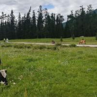 贾登峪这是离喀纳斯景区最近的住宿点,随着近些年新疆旅游的蓬勃发展,这里的酒店一间接着一间地盖,还是供不应求;这不,我们住的酒店还没完全竣工就交付使用了,房内满是油漆味,房外还在施工,尘土飞扬,价格却是高得吓人。想节省点也可以选择住毡房,路边连片草地上遍布毡房,可那股子牛羊的味道也不是那么好受的,反正条件就是如此;不过这里的黄昏很不错,看着牛羊就在你的身边悠闲地吃草,让久居城市的人体验到不一样的感觉。
