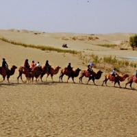 当你穿过塔克拉玛干的沙海,越过古尔班通古特的梭梭林,翻过库木库里的沙山,走过库木塔格的城中沙漠,你会不可救药的爱上沙漠,爱上那阵阵驮铃...... “塔克拉玛干”在维吾尔语里的意思是"走得进,出不来",塔克拉玛干沙漠位于新疆南疆的塔里木盆地中心,属于暖温带干旱沙漠。塔克拉玛干沙漠,是中国最大的沙漠,也是世界第十大沙漠,同时亦是世界第二大流动沙漠。整个沙漠东西长约1000公里,南北宽约400公里,面积达33万平方公里。苍茫天穹下的塔克拉玛干无边无际,于缥缈间产生震慑心灵的神奇力量!