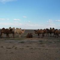 三月自驾游在新疆玩,路经古尔班通古特大沙漠,好大的一片沙漠,一眼望不到边,只有少量植物在这里顽强的生长,几只骆驼在荒漠里悠然的寻找食物。马路的那一头是我们要去富蕴的必经之路。