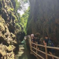 金刀峡整个景区坐索道三个小时能走完,不坐索道多加一小时。景区风景非常赞,不愧是重庆老牌知名景区,拥有全国最长的栈道,沿途的喀斯特岩溶地貌事亮点,石笋石柱形态各异,风景非常原生态,部分路段配有头盔防止碰头很贴心,总之性价比很高,值得推荐。