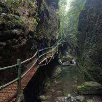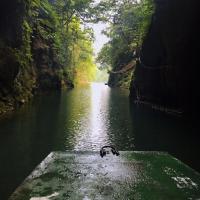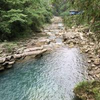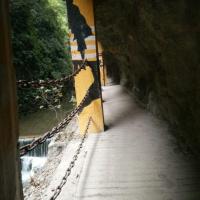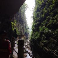 金刀峡适合体力好的朋友,我们大约从11.30走到16.30,走的速度不快,边走边玩,但是还是挺累人,北门进去没什么玩的,纯走路。途中有几个收费景点,听说没什么意思所以都没进去。过了中峡有人体漂流,现在水不多,刚好有两个帅哥在漂,看起挺不错的,准备明年水大的时候来试下。不喜欢走路的朋友可以从南门进走一半折回来。一定带上防蚊的,尽量穿长裤,蚊子多得遭不住!