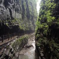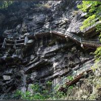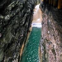金刀峡位于重庆北碚区金刀峡镇,这里峡谷险峻,山雄水秀,还有大量的地质上称为壶穴的深潭绝景。峡谷全长约10公里,有全国最长的仿古栈道,此外还是重庆重要的户外探险基地之一。金刀峡分为上、下峡两段,上峡多沟壑峡谷,处处是清澈的溪水;下峡有很多洞穴深潭,瀑布飞流而下。