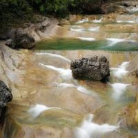 金刀峡有大量的地质上称为壶穴的深潭绝景。玩儿金刀峡一般是乘车到金刀峡上峡口,最好是能够提前一天就上去,现在上峡口找好住宿,然后用剩下的时间去周围转转,如果运气足够好,能够在雨季的时候去,就能够看到大大小小的各种飞瀑了。