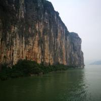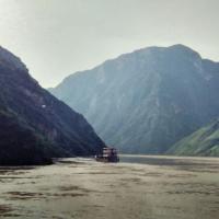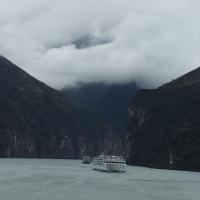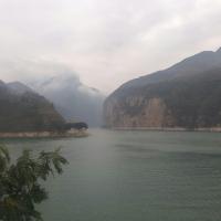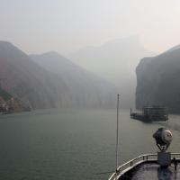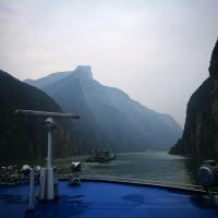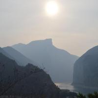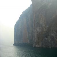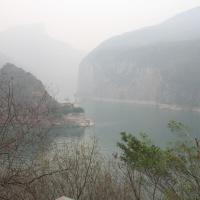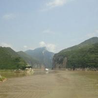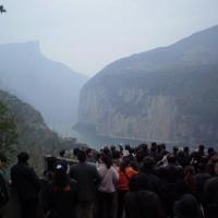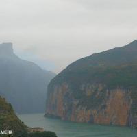 瞿塘峡 在湖北宜昌参加的长江三峡游,实际只游两峡,有一峡在长江大坝下游,他们的船根本不过大坝。那天江上大雾,虽看得不太清楚,倒也增添了几分神秘。