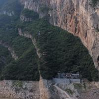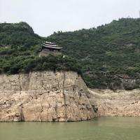 瞿塘峡,三峡的第二个峡谷,由于是枯水季节,江面上有一节裸露的岩石。两边的山峰高低错落有致,非常的险峻。这么陡峭的山峰,还有建筑,不得不佩服人类的伟大。