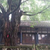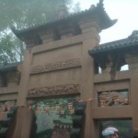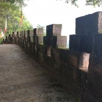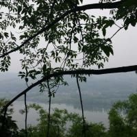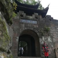 我们自驾到钓鱼城。在山上,因为天阴所以景色看不清楚,但是隐约中看得出天气透明度好的时候这里是很壮观。里面参观的内容很多,有:石照县衙,护国寺,护国门,古军营等。其中有块大石头在护国门这边,在这里拍照,后面有树远处是山谷,景色很美喔。这里有段著名的战争历史,南宋抗蒙时候有过惨烈的战争,这里牢固的山城防御体系成功挡住了蒙军的进攻。