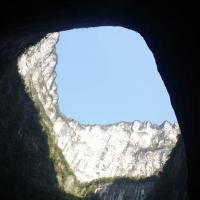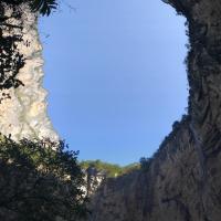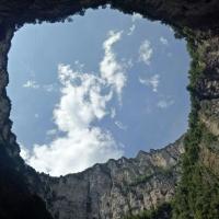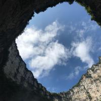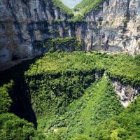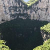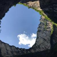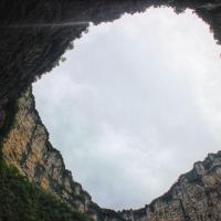 跟全家人从石家庄千里迢迢来到小寨天坑景区,就是为了游览这个天坑地缝。这个天坑走下去还挺轻松的,但上来却要花费很大的体力。天坑底部有一条暗河,植被生长的很茂盛,什么叫坐井观天,到了这里你亲自体验一下就知道了。