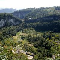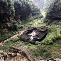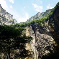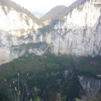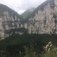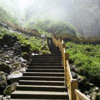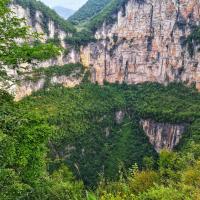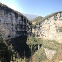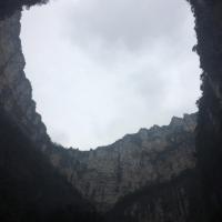 取票很方便,就是小寨天坑累死人啊。从奉节去天坑的路上风景很好,有很多观景台。天坑值得一看,但就是个人得体力好,2800级台阶,准备根登山杖很有必要,费膝盖啊!在下了观光车不久和一半的时候有喝水吃饭的地方,请一定在这两个地方解决吃喝,轻装前行!这两个地方和景区入口都有厕所!天坑是几座山峰间凹下去的一个椭圆形大漏斗。坑口地面标高1331米,深666.2米,坑口直径622米,坑底直径522米。坑壁四周陡峭,在东北方向峭壁上有小道通到坑底。