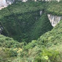 小寨天坑位于重庆市的奉节县,是世界上最大的天坑,和附近的天井峡地缝遥相呼应。天坑深处里面暗河众多,因此20世纪以来国内外各种探险家考察图组队前往。 这里得说明下,重庆的武隆还有个天坑地缝,很容易搞混了!!!小寨的天坑更原始,原始到什么都没!而且更早被熟知。至于武隆的更现代化,所以这些年更火一点。 言归正传。这里从上往下看(图一),很壮观,图一里那条歪歪扭扭的就是路,一路阶梯到地底下,走到你绝望,更绝望的事,下去了还得原路上来,哈哈哈哈哈哈哈!图二就是下到底,什么都没,就一个大洞穴,和一个厕所。 抬头往上看,好比井底之蛙。