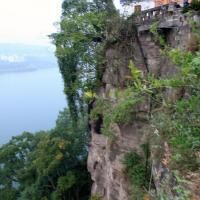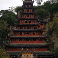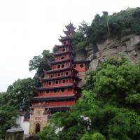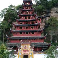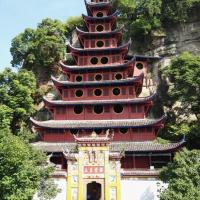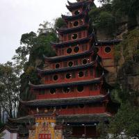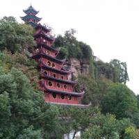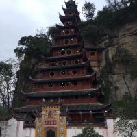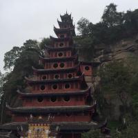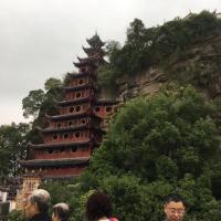 石宝寨位于重庆境内,在长江北岸边,乘邮轮玩三峡的时候都会路过,乘客们可以选择上岸游览。远望石宝寨塔楼,仿佛嵌在悬崖上似的,沿着山而建,每层都有飞檐的造型。近看这个塔楼更是奇特,好像叠积木似的。据说塔楼高12层,但下面9层比较显眼,后面的3层是后来修补的,整个塔都是木质结构。