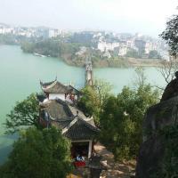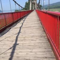 石宝寨在重庆的一个孤岛上,这里还住着一些居民,不过人非常少,他们唯一的收入就是旅游了,因为岛屿很小,旅游山峰就占据了大部分,基本不能农作,不过地方虽然很小,却也是非常值得一观。石宝寨在长江边,从一条非常长的铁索就能过去,铁索以红色为主,让人想起了很多韩国,那里大桥都是这中艳丽的风格的。走在桥上会有一阵阵的风吹过,非常舒服。