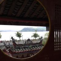 石宝寨这个寨子很有特点,没有用一根钉子,全部靠木头的契合悬挂在峭壁上,爬上去的时候感觉也很惊险。古人的智慧无穷哈。石宝寨是我国现存体积最大、层数最多的穿斗式木结构建筑。2003年三峡蓄水发电之后,长江水面将上升道寨门口,这样子立在水里远看像盆景一样,很有特点。