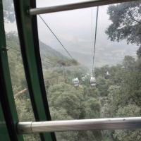 歌乐山国家森林公园缆车几乎没人乘坐,好像一人50,不知道现在涨价了没有。 一会儿就到山顶,山雾缭绕啊,而且湿度太大,没有多做停留。 山顶上有几个当地女孩儿铺着垫子,在这样的湿雾里,坐着开心地聊天⋯ 下山半道买了2根冰棍雪糕,价格和景区外差不多。