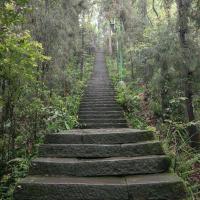 歌乐山国家森林公园还是有点陡的,特别是我选了山间走道,全是小路,好险哦 风景当然不错啦,自然保护得很好,路上遇到的重庆人也都很热心会指路,还会亲切地叫你帮他们拍照,山顶左右的位置有小店,卖饮料和冰粉凉皮这种,还养了一只波斯猫