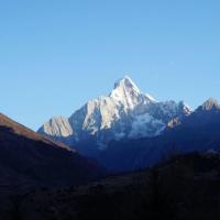 猫鼻梁距离四姑娘山镇约七公里,是看四姑娘山的最佳观赏地(前提是天气晴好),我去的时候正好赶上下雨起雾,一片朦胧,四姑娘山若影若现。