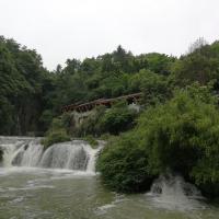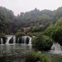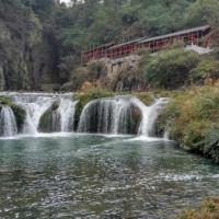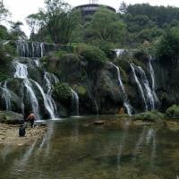 天河潭景区应该是贵阳比较有特色的景区,在原有景区的基础上,引入资金大力建设,包括古街音乐喷泉在内的新的景点都在兴建或已建成。景区的接待中心规模大而正规,规划分期建设,看起来投资方的实力强大。主景是210米的钙化滩瀑布,也是目前国内最宽的钙化滩瀑布,瀑布下游的河叫香粑沟。缺点就是离市区稍远,转车服务难以叫车,交通也不方便。