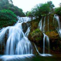 天河潭位于贵阳西南城郊,这里汇聚了溶洞和瀑布景观,堪称贵州山水的微缩。景区分为钙化滩瀑布观赏、香粑沟水文化、水洞游船和旱洞游览四大内容,游客还可坐上约400米长的高空滑索俯瞰景区风光。向左拐第,一眼看到的就是210米的钙化滩瀑布,这也是目前国内最宽的钙化滩瀑布。瀑布上游即是溶洞景区,天河潭溶洞分为旱洞和水洞。水洞需乘船游览,10-12人一条船,船票包含在通票内,有专门的员工划船并沿途介绍。
