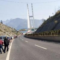 北盘江大桥坐落于云南宣威与贵州水城交界处,横跨云贵两省,全长1341.4米,桥面到谷底垂直高度565米,相当于200层楼高,成为目前世界第一高桥。同时,大桥东、西两岸的主桥墩高度分别为269米和247米,720米的主跨也仅次于后期开工建设的贵黔高速公路鸭池河特大桥,在同类型桥梁主跨的跨径中排位世界第二。大桥由云贵两省合作共建,从桥的中部分云南界贵州界。