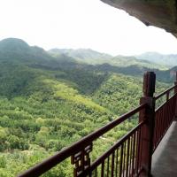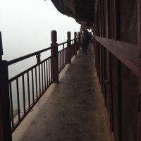 麦积山石窟——四大名窟之一 拥有其他石窟所没有的栈道 高空的楼梯走起来让人也是觉得比较有意思的 从下面往上看的时候也是很壮观 我们今天去的时候 有点小雨 起雾了 不然远眺青山一定更加美丽 上到石窟需要70元 不上就是20 可是要是不上石窟 那20元也没有必要出了