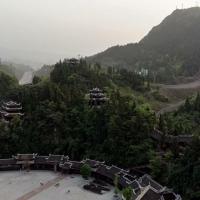 蚩尤九黎城位于彭水县乌江左岸,彭(水)务(川)二级路旁,老县城与新县城连接线上,距离老县城4公里,总投资约8个亿,占地30公顷,建筑面积9万平方米,蚩尤九黎城是彭水自然风光与苗族历史文化的有机结合体,该项目定位为生态旅游景区,整个工程将分为三期建设
