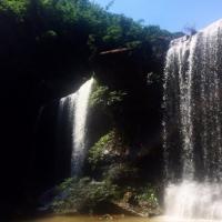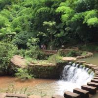 四洞沟被称为"万竹之园,小家碧玉,没有敗笔的景区"。四洞沟景区以四个形态各异的瀑布为主,第一洞——水帘洞瀑布,水帘洞瀑布是四洞沟唯一可以进入瀑布后面观赏和接触的瀑布;第二洞——月亮潭瀑布,形如弯月,比较温婉;第三洞——飞蛙崖瀑布,神似青蛙在水中央;第四洞——白龙潭瀑布,气势比较磅礴。 售票处到检票处有免费的摆渡车。景区道路是左右环线,左边是步行道,右边是观光车道。建议步行进去,观光车出来。不过观光车的终点站在二洞和三洞之间的商业街区附近。 三洞和四洞还是需要步行往返。观光车中途观景点似乎可以停留,我们回程的时候观光车司机问我们要不要停留,但我们之前步行进入看过了,所以直接回出口了。 一洞在往二