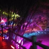 来到四洞沟这里给你一种神秘的感觉,门口跳舞的仙女很多,工作人员也很细心,路边全是灯照着路,一路都有工作人员,让你安心看美景,,,