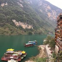 乌江画廊沿江的景色不错,一会儿晴空方好,一会儿细雨纷纷,别有一番烟雨乌江的味道!换票方便快捷。一路风景很美,水碧绿得让人难以置信,总共两个小时左右。感觉当时游漓江的两岸风景也不过如此了。龚滩古镇非常小巧精致,国庆人也不是太多,值得一游。