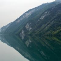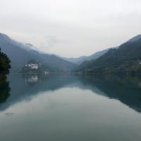 在如泼墨山水的乌江画廊 你从墨色深处被隐去 天青色等烟雨 而我在等你 炊烟袅袅升起 隔江千万里 在你那若隐若现的飘逸 就当我为遇见你伏笔。 我在龚滩乌江边的客栈住了二天。清晨时我站在阳台眺望,乌江边的山恋飘出团团白雾,渐渐变浓,聚聚散散。白雾若隐若现在乌江上缠缠绵绵,袅袅飘散。此情此景,更让我去看清乌江的迫切念头。 乌江百里画廊是重庆市酉阳土家族苗族自治县及贵州省沿河土家族自治县风景名胜区,是千里乌江的精华,被誉为“乌江百里画廊”。 我花了一百元坐游船游览乌江画廊。“山似斧劈,水如碧玉,虬枝盘旋,水鸟嬉翔”,奇山,怪石,碧水,险滩,古镇是乌江画廊的看点。 雄奇险秀的河谷沟壑,鬼斧神工的悬崖绝壁