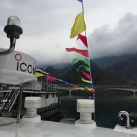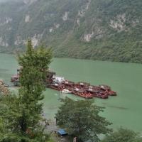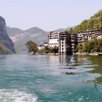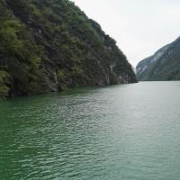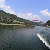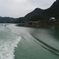 乌江百里画廊游船从万足码头开往龚滩古镇,船行二小时十分钟,一路青山绿水,景色优美。经过洪渡大桥后,右边是贵州的洪渡古镇,左边是重庆的龚滩古镇,一江跨两省三县,非常值得一游。