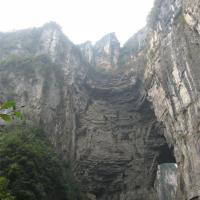 武隆天坑地缝国家地质公园位于重庆市武隆县境内,长江支流乌江下游,属于典型的喀斯特地貌,宏达的天生桥群、面积巨大的天坑、险峻幽深的地缝。天坑景区拥有世界上最大的天生桥群和世界第二大的天坑群。这里真正为人所知,是在它成为电影《满城尽带黄金甲》外景地之后。同时这里也是《变形金刚4》的外景地。游览龙水峡地缝时,先乘坐电梯下到半山,再步行到地缝的谷底,沿岩壁栈道顺暗河前行,沿途处处是瀑布、溪流和原始植被。