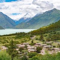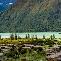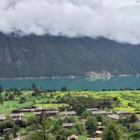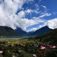 巴松措,是红教的一处著名神湖和圣地,西藏首个也是目前唯一的自然风景类国家5A级旅游风景区。巴松措有一个小村庄叫措高村,“措高”藏语就是湖头的意思,这是一个隐藏在圣湖尽头的藏式神秘古村。到达巴松措后,沿着湖边公路往前走,沿途松林高大挺拔,松香淡淡,大约40分钟就到措高村了。错高村,依湖而建,房舍错落,一湖如带,而背后,是海拔6300余米的杰青那拉嘎布雪山,飘渺的云雾从四周的山头蔓延下来,错高村就这样安然镶嵌在雪山绿水之间,好一处依山傍水的世外小桃源!