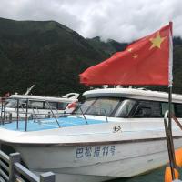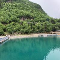 抵达巴松措,藏语意为“绿色的水”,隐于远离城镇的山沟沟里,门票120元 汽车开进去绕了很久,正如其名,巴松措的湖水是蓝绿色的,很像丽江的蓝月谷青山如黛,将一池碧水拥入怀中,不由想起很久以前听过的一首歌:湖水是你的眼神,梦想满天星辰。可乘快艇泛舟湖上,约50元学习网红,拍了张牵手照。。。