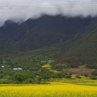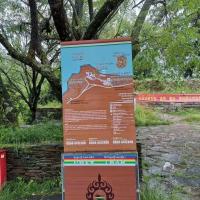 十一点三十分,租车从八一镇出发自驾游去巴松措,下午一点到达景区,游览二到三个小时,下午六点回到八一镇。住香帕拉酒店。 林芝至拉萨的高速公路已修到工布江达县。在巴河镇下高速,三十多公里的公路带你来到景区。路上停车二次,一次是油菜花开在绿色山谷,蜿蜒向上,那夺人眼球的黄色忍不住叫停司机。还有一次是司机主动停车,汹汹的水流从滚水坝跌落,轰鸣着,卷起一堆风雪,滚滚向前。站在岸边,近距离俯视激流,令人顿感眩晕,仓皇撤退。 景区票价不菲,包含两个景点和内部交通费用。首站是结巴村,由福建泉州援建。大巴司机规定了半个小时的游程。下车,登上观景台。这里海拔约3400米,二三百米的缓坡和台阶已让人气喘吁吁。好在景