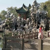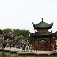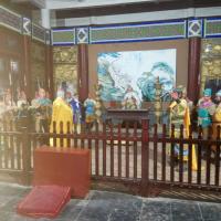 到了开封一定要去天波杨府看看的啊。很不巧的是天下雨,气温有点低。赶到杨府门口,“杨家将”热闹的迎宾仪式刚刚收尾,而因为下雨,之后的一场表演也取消了。好在杨府里回廊四通八达,我们也可既避雨又观景了。建筑塑像都是新建的,少了点历史感。不过在杨府展出的今年开封新培育的七彩菊和豫剧博物馆的演出,给了我们意外的惊喜。杨府里的开封豫剧博物馆有豫剧折子戏的演出,只要不坐前面摆有茶水瓜子的方桌,后面的座位都是免费的,不少本地的剧迷天天来看,有的已可全场跟唱了。据当地人讲,这些演员都是本地的名角哦