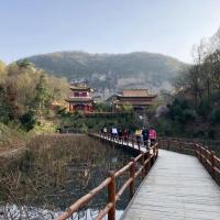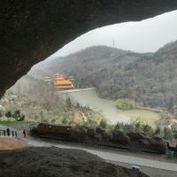 大别山石窟此石窟据说是天然形成的,距今己有|亿多年了.从大门进去后,先可进香,接着看石窟,上到山顶后,再从另一边穿裂谷而下,全程大约1个多小时.