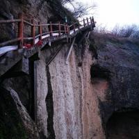 大别山石窟这里有六大待解之谜:悬崖神韭菜、石窟古民居遗址、独特的地质奇观、神秘悬崖泥棺、古城墙遗址、悬崖千年木桩,还不错,