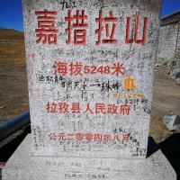 嘉措拉山口5248米,水泥标高牌上挂满了五彩经幡。 天气晴朗时,站在嘉措拉山口,不仅可以眺望到珠穆朗玛峰,还可以眺望到另外三座海拔均在八千多米之上的卓奥友峰、洛子峰和马卡鲁峰