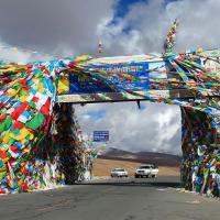 嘉措拉山口,也称定日界,海拔5248米,是G318国道的最高点。这里是通往珠峰景区的标志性入口。旗门上无数经幡飘扬,气势磅礴。远处的喜马拉雅山脉白雪皑皑,连绵起伏