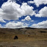 延省道过拉孜县,然后进入了定日县,来到这个嘉措拉山。 看到碑刻海拔高度5248米,突然觉得迷茫消退、开始兴奋,因为确实没想到这里已经有那么高了。 真正的高原之地,确实是不宜居的,光秃秃的寸草不生,放眼一片荒漠,只有牦牛在低头找地上为数不多的可以啃的东西(算食物)。