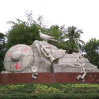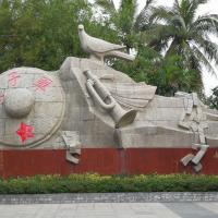 红色娘子军纪念园还不错,整个雕像由锁链、娘子军竹斗笠、号角以及和平鸽组成。鸽子代表和平,美好的生活;斗笠代表红色娘子军;脚镣代表妇女所受的压迫,我们是在网上定的门票,价格也比较优惠,取票也很方便。