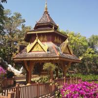 曼听公园里面非常大,景色很好,全部是傣族和泰国式建筑,有总佛寺,把门票保留好,不然去总佛寺再想回来曼亭公园就要重新买票,我们逛完整个园区还去看了大象表演,还可以和它一起拍照,非常有趣,那里还有租衣服,30元,值得游玩的地方!