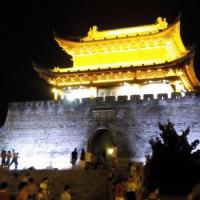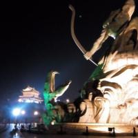 同样的巴陵广场,連著汴河街,岳阳楼,面对著洞庭湖,头天晚上到此一遊,人潮如織,应该是当地人晚上纳凉好去处,但除广场外,灯光昏暗繞了一大圈,看到了瞻岳楼及旁边的小楼,嚇了一跳,二个小楼,一个后羿射日大雕像,這不会就是岳阳楼吧,太失望了。繞过汴河街看到岳阳楼公园,黑漆一片,问人才知道晚上没开,还好,明早再来。