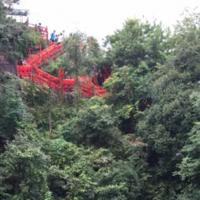 起初走上去的时候,卧槽,这就叫“天下第一桥”?看起来毫无气势啊!走过去之后再看全貌,卧槽!好恐怖!太惊险了。 在挂连心锁的地方有土家采“岩耳”表演,只要给200元就有人爬下悬崖给你看。