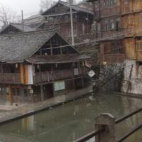 趁着薄雾前往位于肇兴以东7公里的山腰上的堂安,只是听说这地方只是一座只有160多户,800多人口的侗寨,是中国和挪威合作建立的世界上唯一的一座侗族生态博物馆。堂安距今已有700多年的历史,但只是寨子里的长者如此说的。只因侗族没自己的文字也就无从考证这堂安到底建于哪一年了。 鼓楼高高的鼓楼矗立在寨子的中央,旁边是戏台。三三两两的几个人就散落在鼓楼下漫无目的的闲谈着,对面的池塘里有着浣戏的妇女。随着青石台级而上却见到了堂安的另一个宝——母亲井瓢井。瓢井是用来盛泉水的石斗,由青石打造,由于其左右各有一凹槽,形似木瓢而得名。据说正是因为有这股泉水,才有了堂安,要知道生活在堂安这样海拔935米的高坡上,